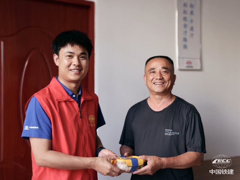 張鑫(左)開展“愛心餐·暖萬家”公益活動(中鐵建物業 供圖)